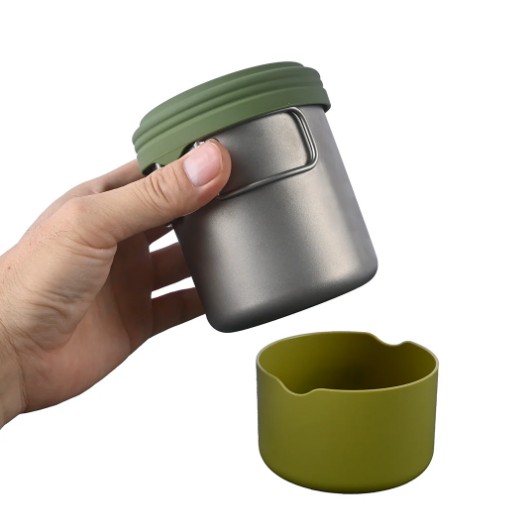 別売りのTRAILCUP300のプラカップと組み合わせることで、コップもスタッキングできます。シリコン製の蓋をすることで収納袋がいらない点も素晴らしいですね。