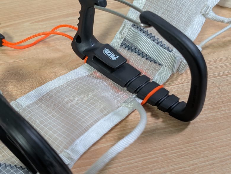 構造上、オレンジの紐が出てしまいます。こういった「飛び出した紐」は何かしら悪さをする場合があるので、個人的にはあまり好きではありません。キャリツールEVOは沢登りで一回使った程度なので、冬山に向けて何かしら紐が邪魔にならないように工夫しようと思います。