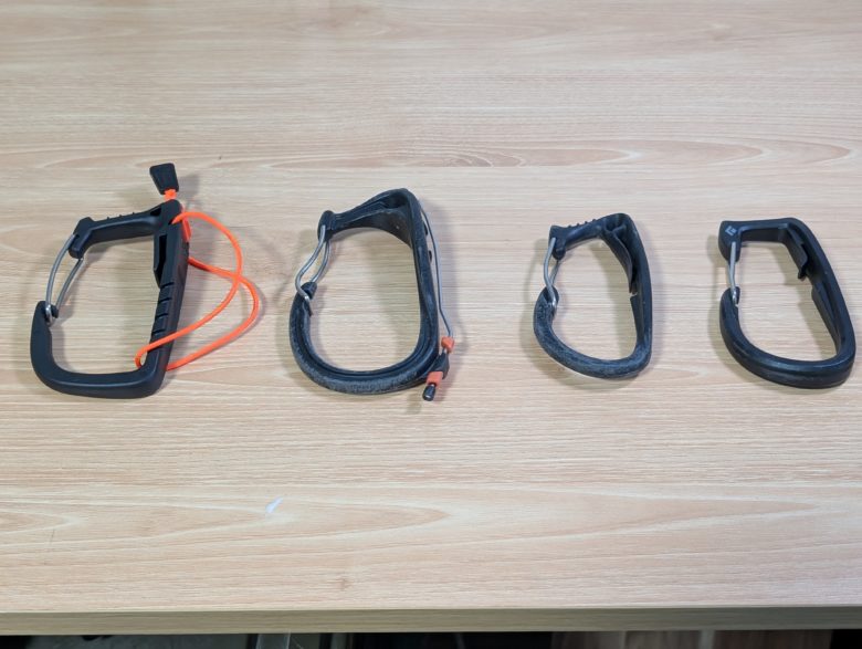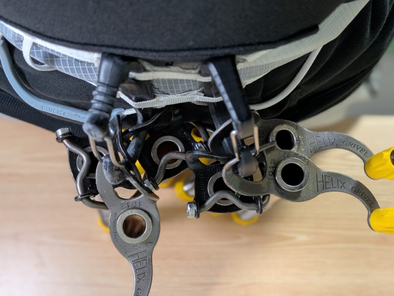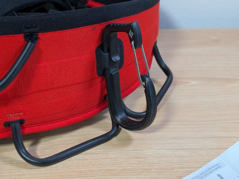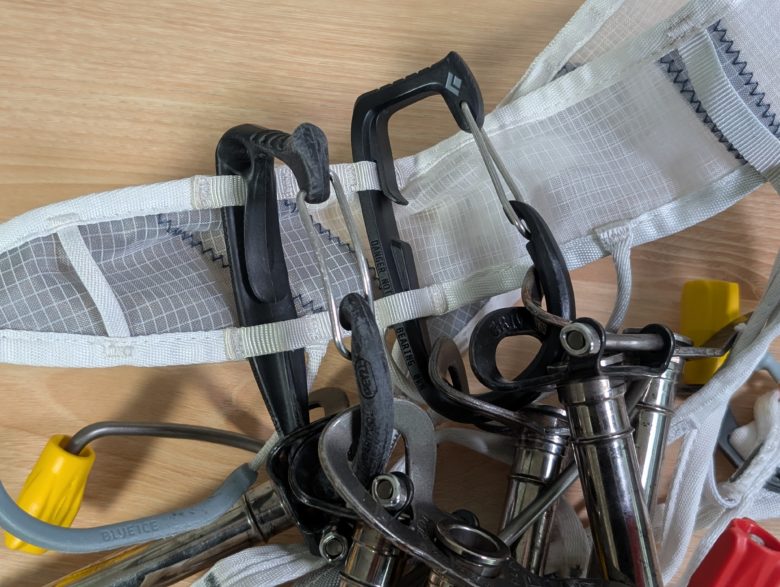 アイスクリッパースロットのあるハーネスとの装着感はどれも良いです。後述しますが、脱着が一番容易なのはブラックダヤイモンドのアイスクリッパーです。