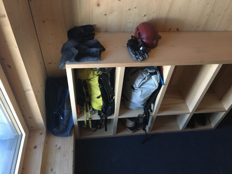 寝袋など、マッターホルン登山に不要な荷物はヘルンリヒュッテに残置できます。残置用の専用部屋があります。水筒を持っていれば、ヘルンリヒュッテの夕食後にお茶を入れてくれます。ハイドレーションは不可なので注意してください。僕はハイドレーションしか持ってなかったので入れてもらえませんでした。