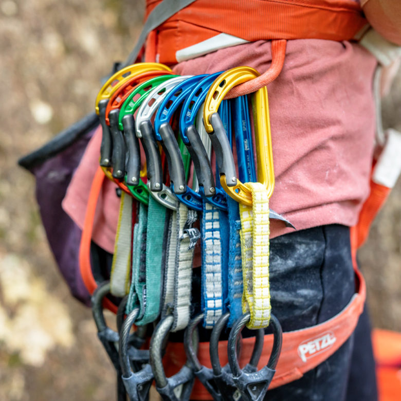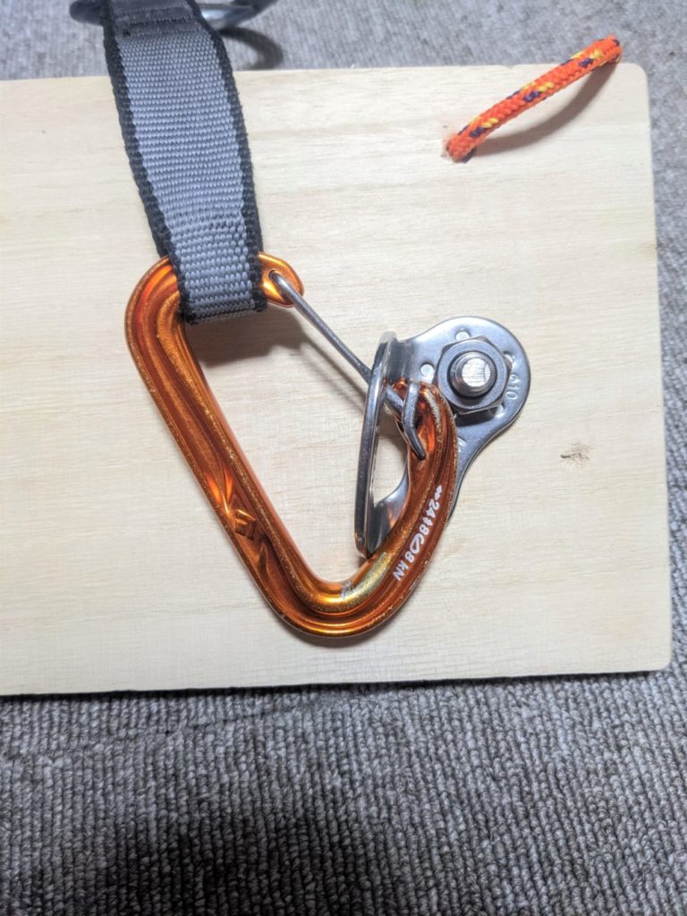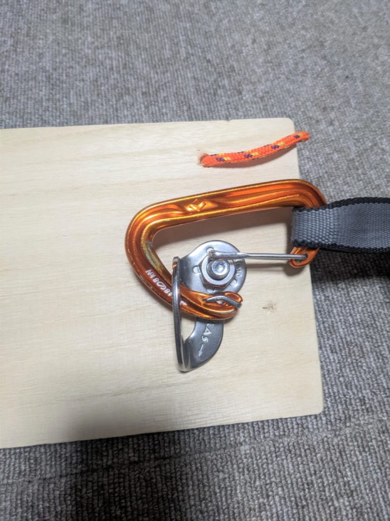 ロープ側はクリップしやすく、ウィップフラッシュ現象が起きにくいカラビナがおすすめ