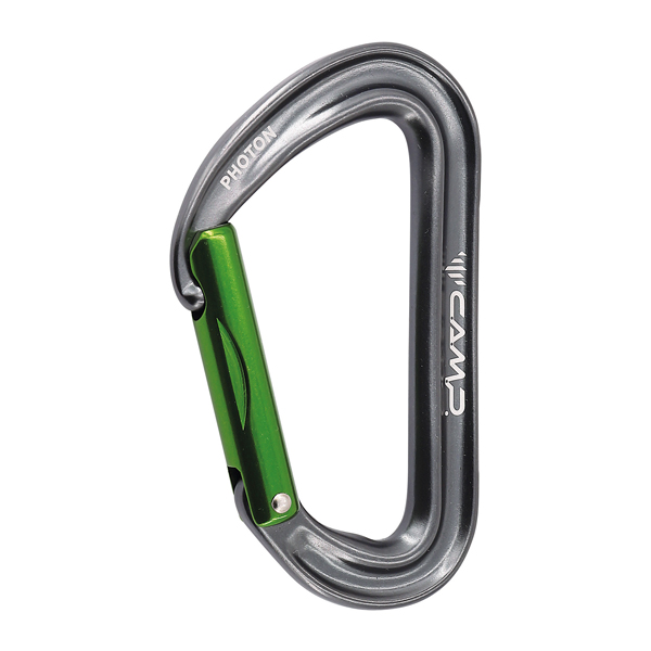 アルパインからスポートルートまでオールラウンドに使えます。ロープ側のダイオンは、ワイヤーゲートとキーロックのメリットを兼ね備えています。支点側のフォトンは世界最軽量のフルサイズキーロックカラビナです。