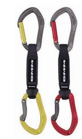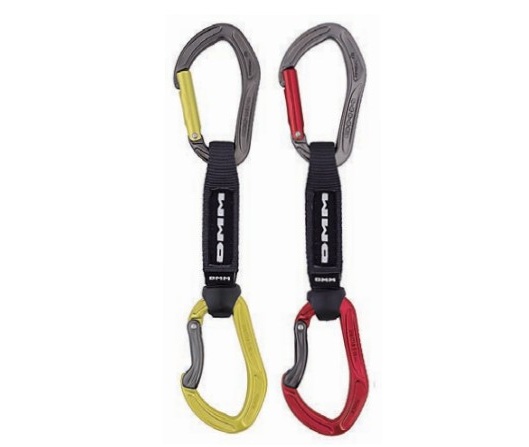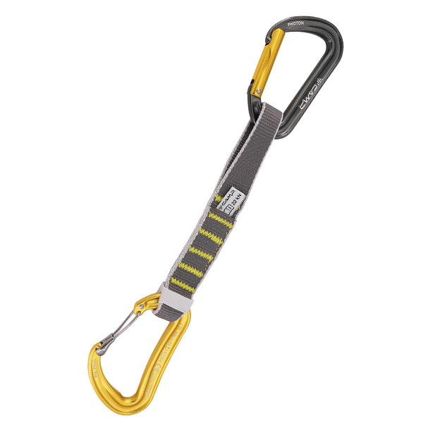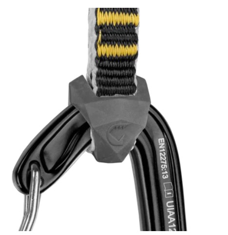 ボルト側にキーロックのホットフォージカラビナ、ロープクリップ側にワイヤーゲートのホットワイヤーを組み合わせた、クリップと回収の両方がしやすいクイックドロー。ランナーにはカラビナの回転を抑えて適切な位置をキープするストレートジャケットを内蔵。明るいカラーをロープクリップ側に採用。