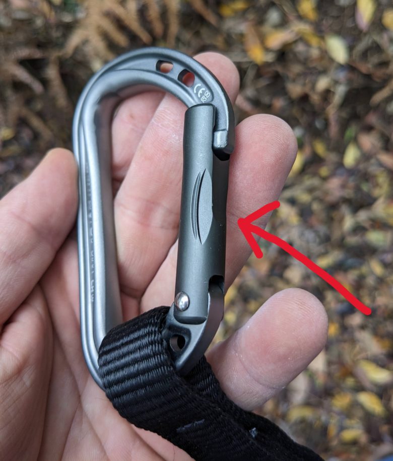 支点側はゲートが開きやすくいように窪みのあるカラビナがおすすめ