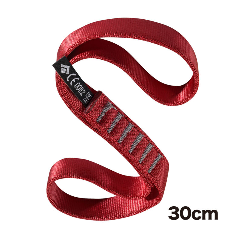 輪っか状(ソウンスリング)のスリングのことです。素材は主にナイロンとダイニーマがあります。クライミングでの使用に耐えられる強度(最大22kN)がある点が特徴です。強度はタグに記載されているので確認しましょう。