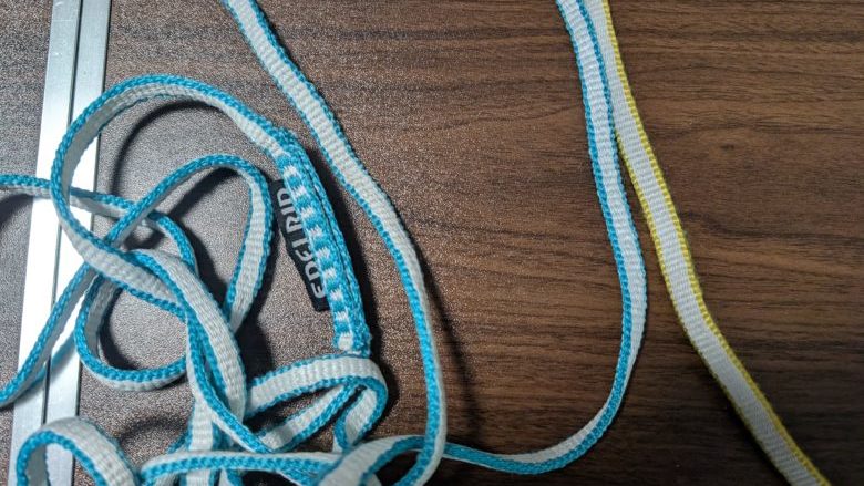 講習会などで使われる簡易ボディハーネスを作るなら中空タイプのナイロンスリングがおすすめです。幅が広くしなやかな方が身体に対してダメージが少ないからです。
