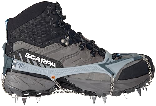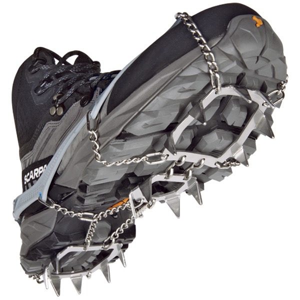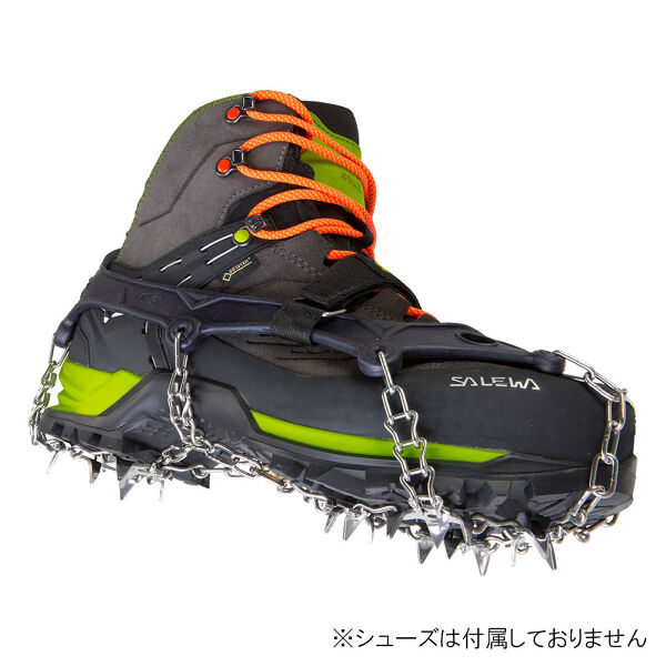 - 18個の頑丈なステンレススチール製スパイクのおかげで氷上での優れたグリップ力を発揮