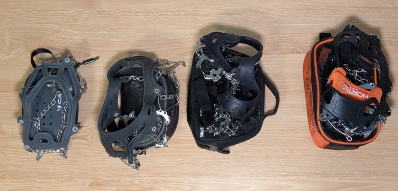 チェーンスパイクと軽アイゼンでは、爪の長さの違いは一目瞭然です。
