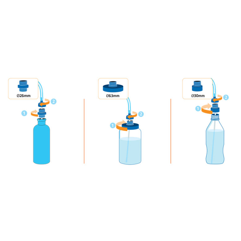 お手持ちの水筒を手軽にハイドレーションとして使えます。63mm,42mm,28mmに対応するパーツが付いているので、キャップサイズを選びません。