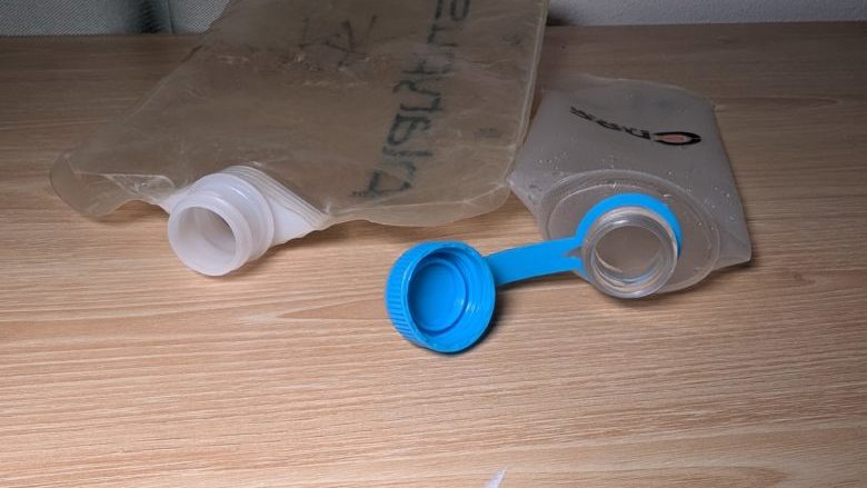 ソフトボトルは、素材がポリエチレンやナイロンのモデルは数年使用すると穴が開きます。何度も折れ曲がる個所はみるみる劣化していくのが分かります。素材がTPUの物は耐久性が高く、何年使用してもなかなか壊れません。